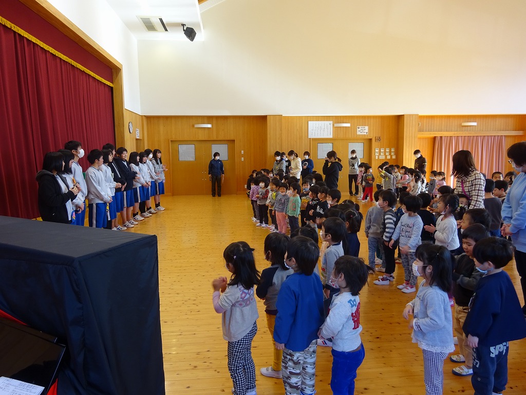 子ども達が毎月心待ちにしていた益田清風高校のお兄さんお姉さんの保育実習が最後になり、みんなでお別れ会を行いました。 |