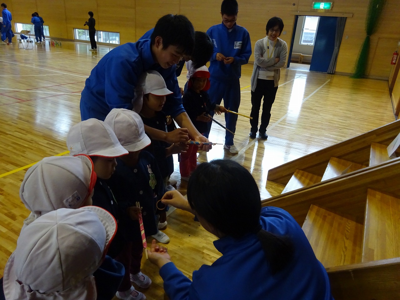 南中学校の体育館で、3年生のお兄さんお姉さんと一緒に遊んできました。 |