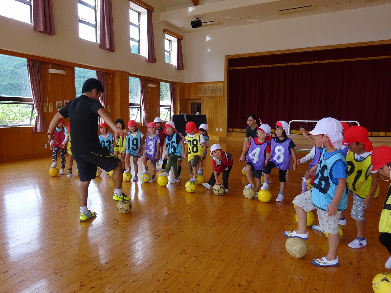 岐阜県サッカー協会から講師の方が来てくださり、年長さんのサッカー教室が行われました。 |
