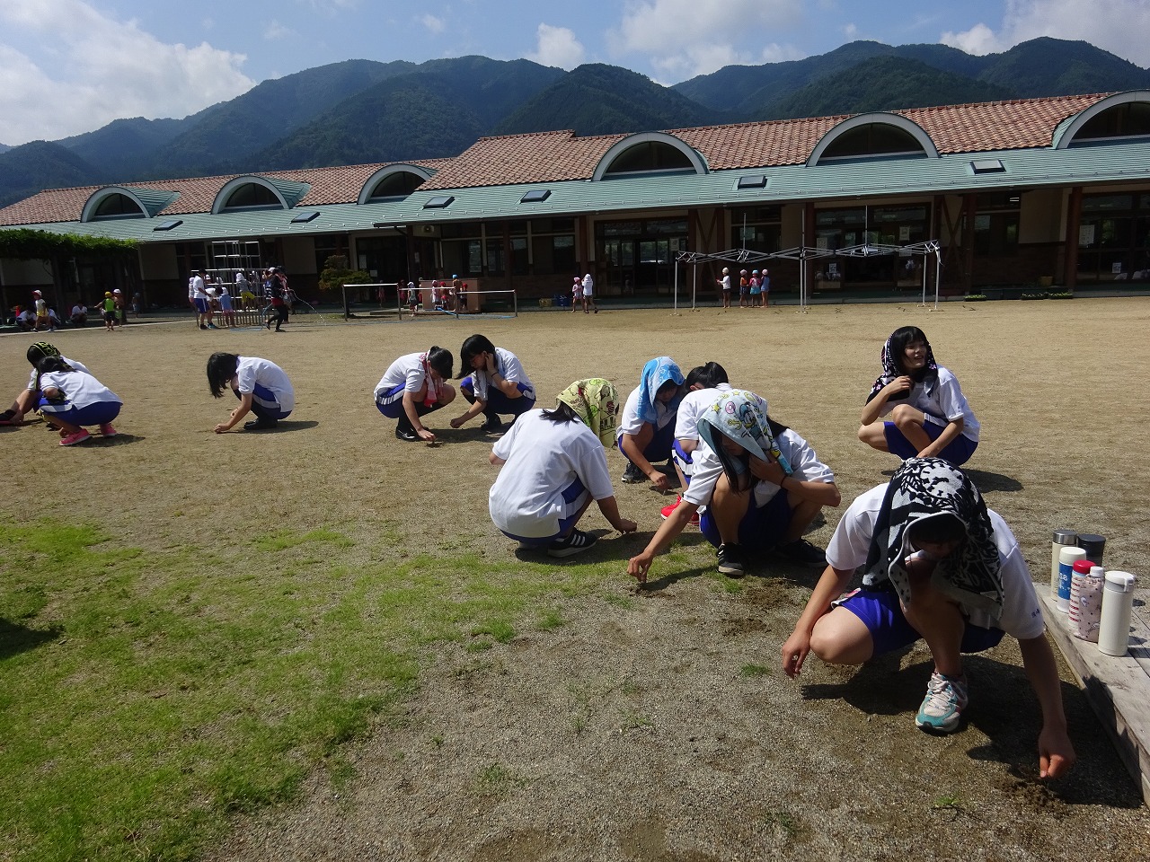 益田清風高校総合学科1年生のお兄さんお姉さんが草取りのボランティアにきてくださいました。 |