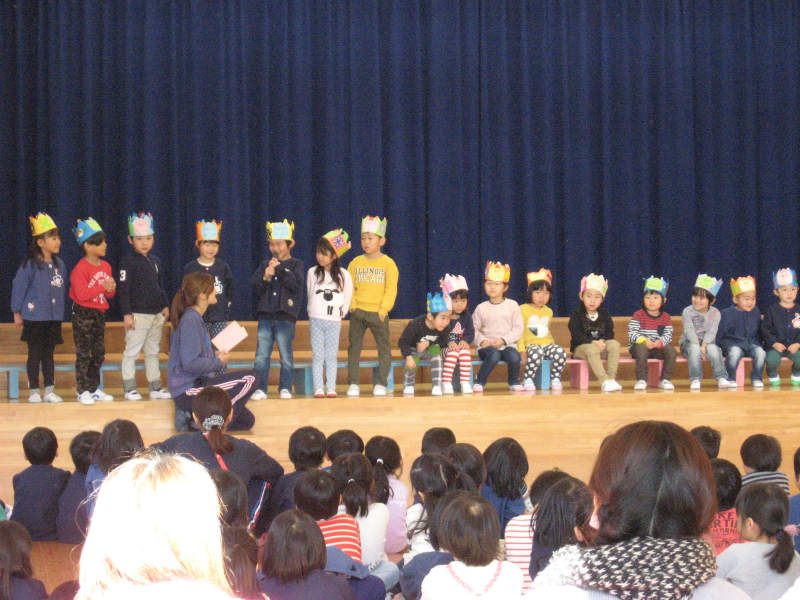待ちに待った発表会、ワクワク楽しにしたり、ドキドキ緊張をしたりといろんな表情を見せてくれた年中さんの発表会でした。 |