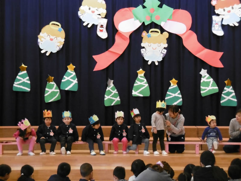 楽しみにしていたクリスマス会♪ 朝から「今日はサンタさん来てくれるかな〜」「プレゼントもらえるかな〜」と子ども達の声が聞こえてきました。 |