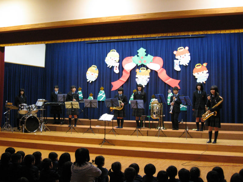 今年も益田清風高校吹奏楽部のお兄さんお姉さんが来てくださり、クリスマスコンサートを開いてくださいました。 |