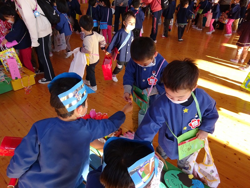 今年のお店屋さんごっこのテーマは“動物園”でした。子ども達は遊戯室の扉の前で、開店を今か今かと待ちきれない様子でそわそわしていました。 |