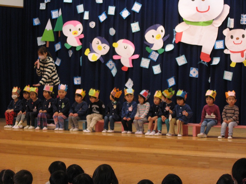 今月は誕生児15名の誕生会でした。 |