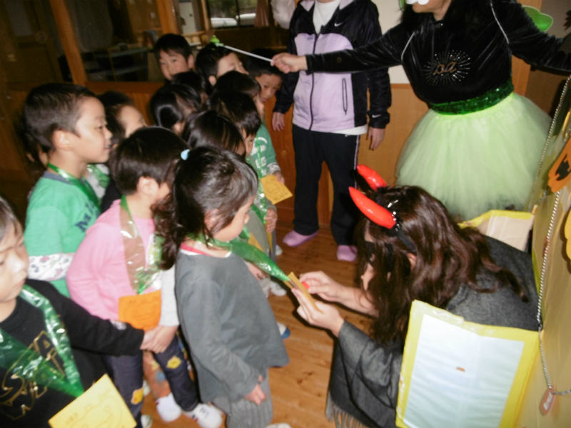 誕生会でハロウィンの由来を聞いた後、今度はみんなで“Let's Halloween”をしました。 |