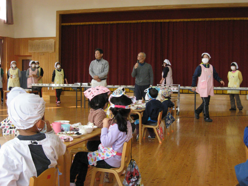 日頃畑や田んぼでお世話になっている中田さんと今井さんをお招きして、収穫祭を行いました。 |