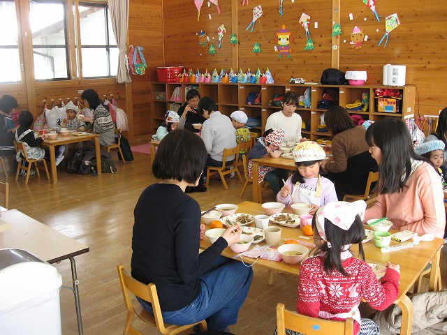 きたこども園で、年少親子給食会がありました。