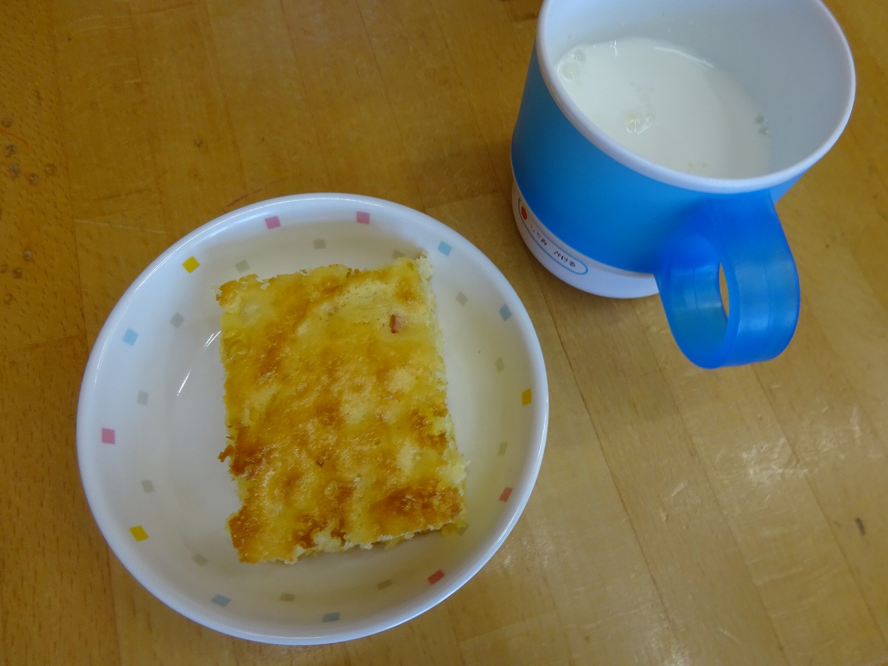 ホットケーキ粉に溶かしたバターと溶いた卵、砂糖、スキムミルクを入れ混ぜる。りんごのいちょう切りを加えて軽く混ぜ合わせる。カップなどに流し入れて、オーブンで焼き色がつくまで焼く。