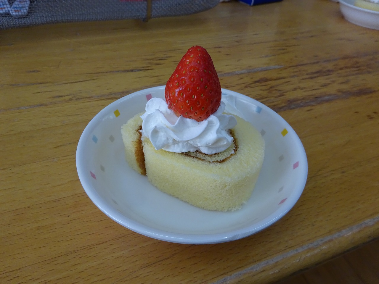 今日は、クリスマスメニューでした。 おやつは、ロールケーキにホイップクリームをしぼり、いちごを飾りました。 年長さんは、自分のは自分で飾ったようです。楽しそうでした。