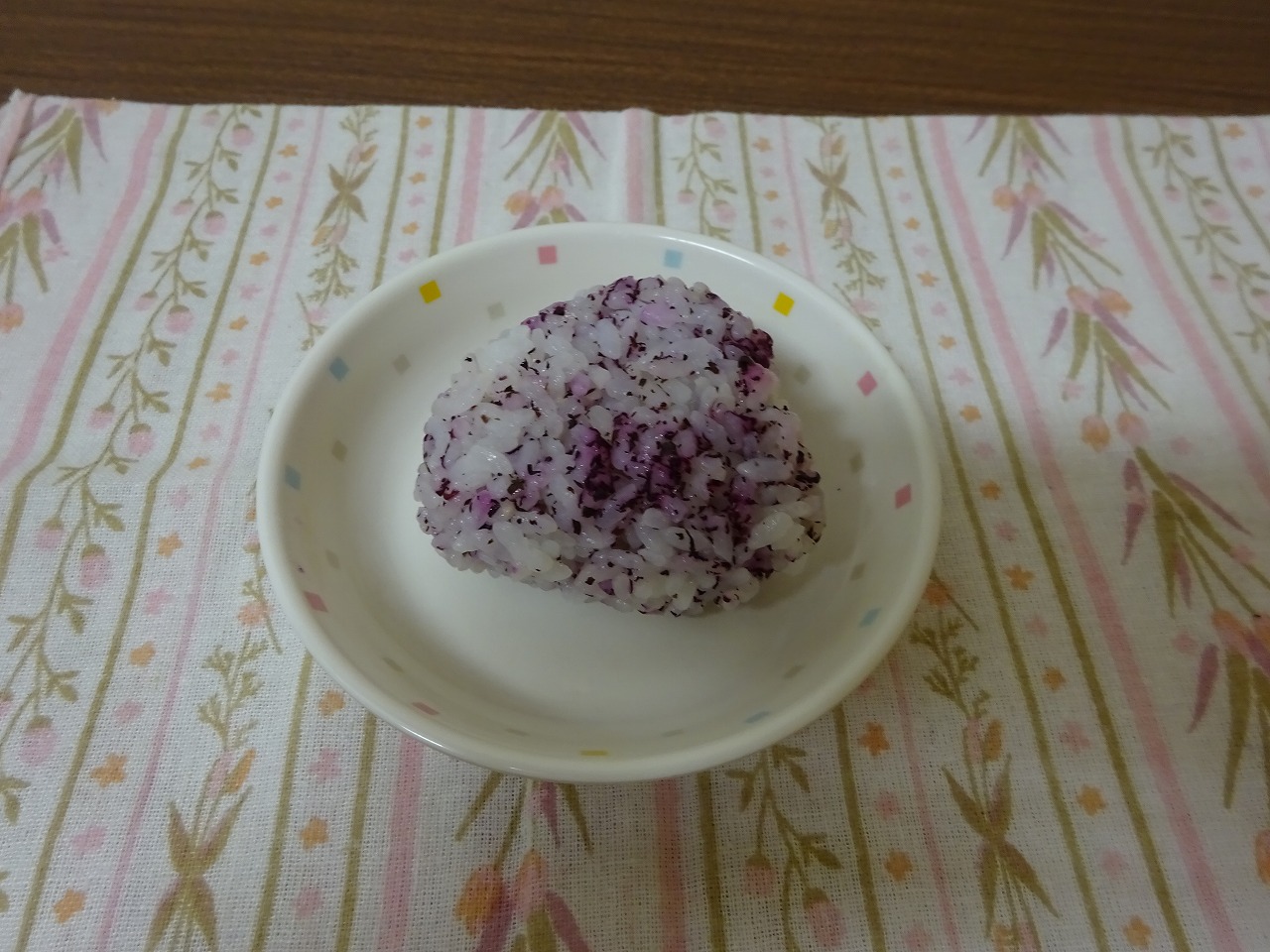 今日のおやつ「手作りおにぎり(ゆかり)」