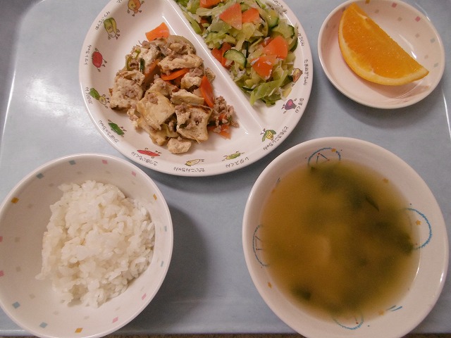 3月15日(水) 給食 ・ごはん ・肉豆腐 ・きゅうりの酢の物 ・みそ汁 ・オレンジ