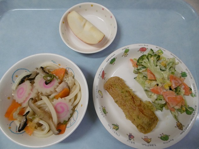 10月4日(火) 給食 ・煮込みうどん ・ちくわの磯辺揚げ ・コーンサラダ ・りんご