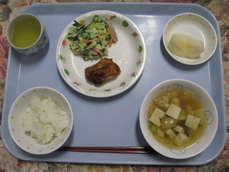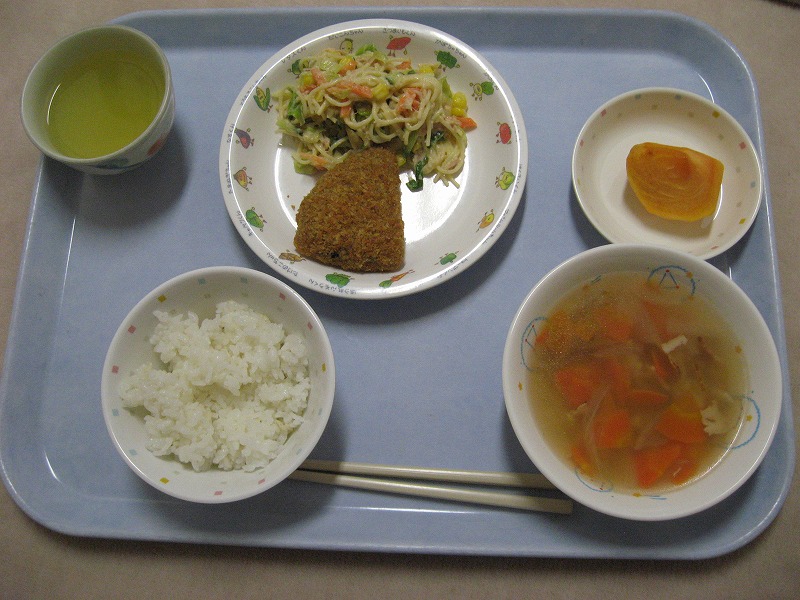 ☆10月30日(金)給食 ・むぎごはん ・かぼちゃ挽肉フライ ・スパサラダ ・ABCスープ ・かき
