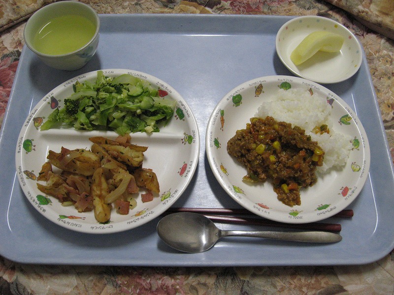 ☆11月2日(月)給食 ・ドライカレー ・ジャーマンポテト ・グリーンサラダ ・りんご