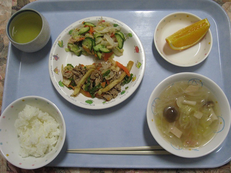 ☆11月9日(月)給食 ・発芽玄米ごはん ・豚肉ピーマンソテー ・ツナサラダ ・春雨スープ ・オレンジ