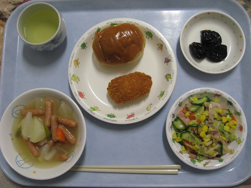 ☆11月10日(火)給食 ・ロールパン ・クリームコロッケ ・ポトフ ・フレンチサラダ ・プルーン