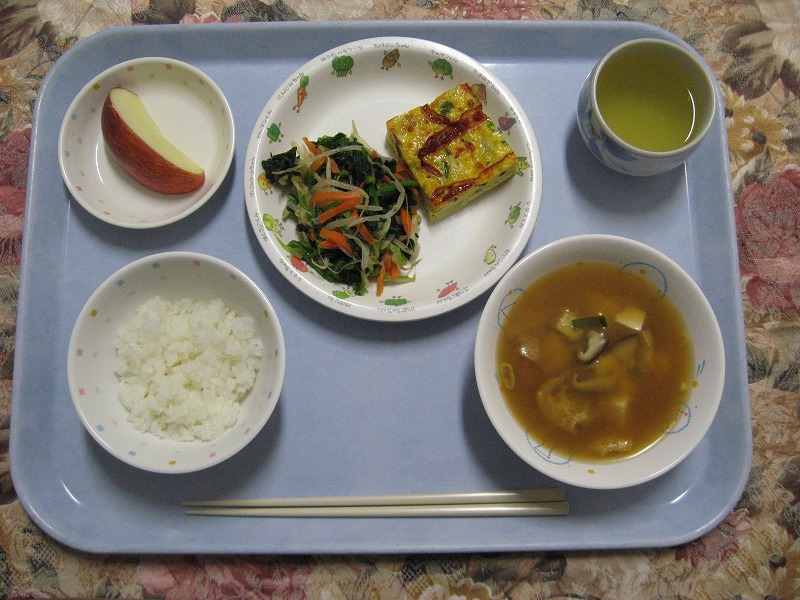 ☆11月11日(水)給食 ・ごはん ・スペイン風オムレツ ・ほうれん草おかか和え ・みそ汁 ・りんご