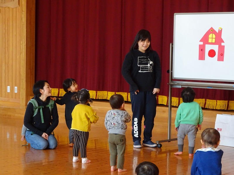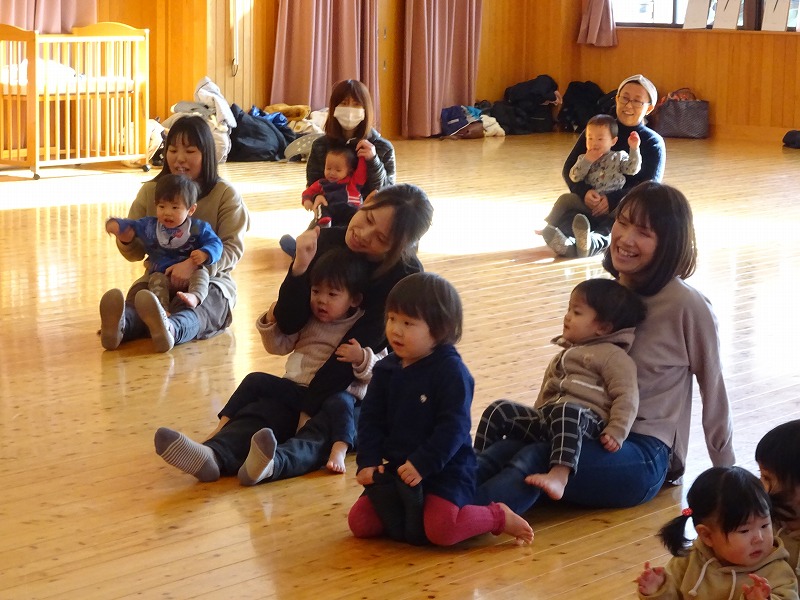 今日のぽっかぽっかDayは「リトミック」を行いました。20組46人の参加がありました。みちる保育士が奏でるピアノの音に合わせ、歌ったり、動いたり、しゃがんだり、高い高いをしたり、可愛い動物になりきり模倣遊びをしたり…。親子で楽しそうに体を動かす姿や子どもたちの嬉しそうな溢れんばかりの最高の笑顔がみられる時間となりました。
