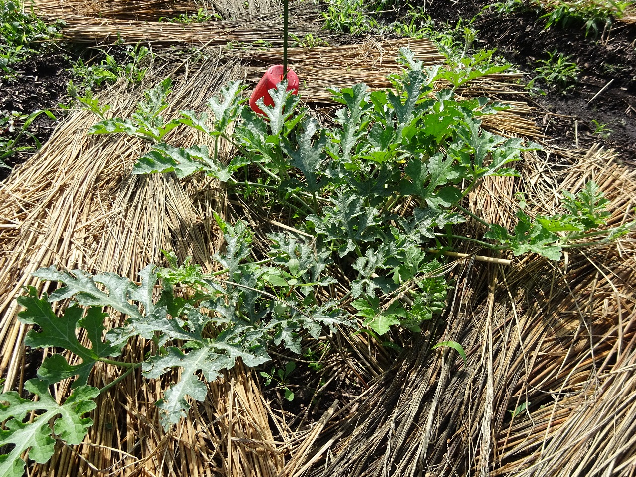 季節は梅雨になり雨降りの日が続いています。畑の作物たちにとっては『恵みの雨』。雨水を沢山飲んでグングン生長していますよ。(雑草たちも喜んでいます…)梅雨の晴れ間に草取りをしました。なんと…スイカの赤ちゃんが!こんなに小さくてもシマシマ模様があるんですよ!参加者を募って農園活動を行うことは出来ませんが、時間のある時に親子で畑を覗いてみてくださいね。