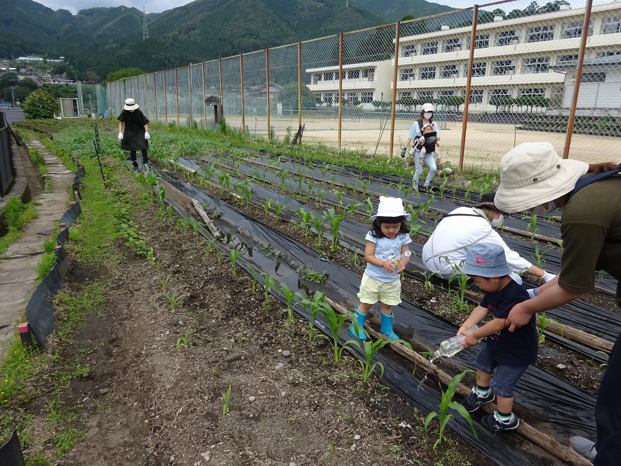 6月22日(火)から毎週火曜日10:00〜10:30まで、農園デーをおこなうことにしました。 初日は、6組の親子さんが来てくださり、ぐんと大きくなったとうもろこしやヤーコンに水をやり、周りの草をたくさんとってお世話を楽しんでいただくことができました。とうもろこしの芽が何者かに食いちぎられていたのには親さんもびっくり。かわいい幼虫も見つけ、いろいろな発見ができたひとときとなりました。