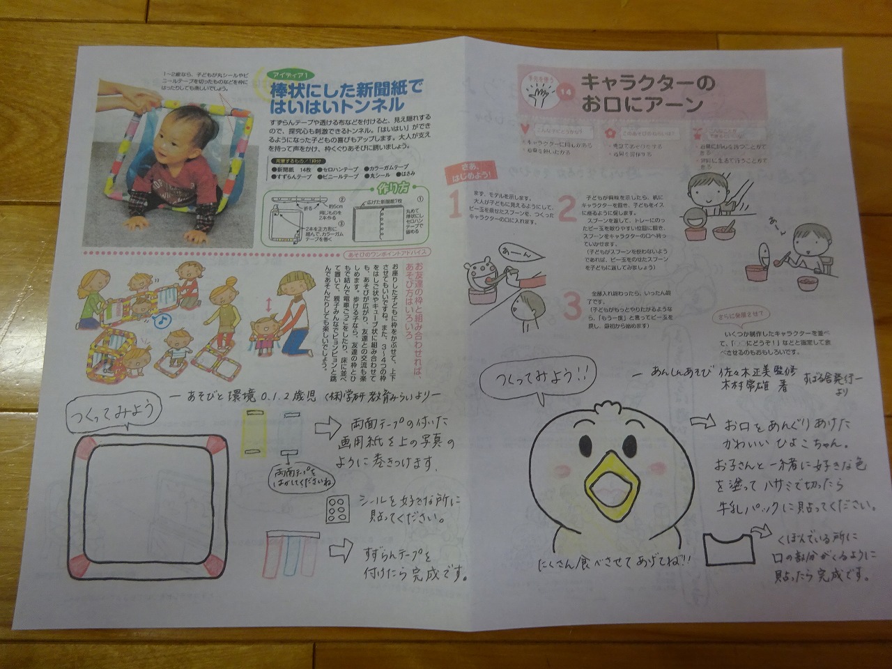 おうちで遊べるおもちゃの製作キットと「遊びは心の栄養」の資料を配布しました。
