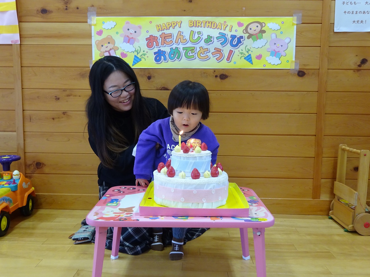 今月も個別で誕生会をおこない、5組の親子が参加してくださいました。 日頃から遊びに来ている親子さんが多かったので、親さん同士も成長や大きくなってきたからこその悩みを語り合うなど、子育てを振り返る良い機会となったようでした。 みんなにお祝いしてもらう時のお子さんの表情は毎月とても嬉しそうです。
