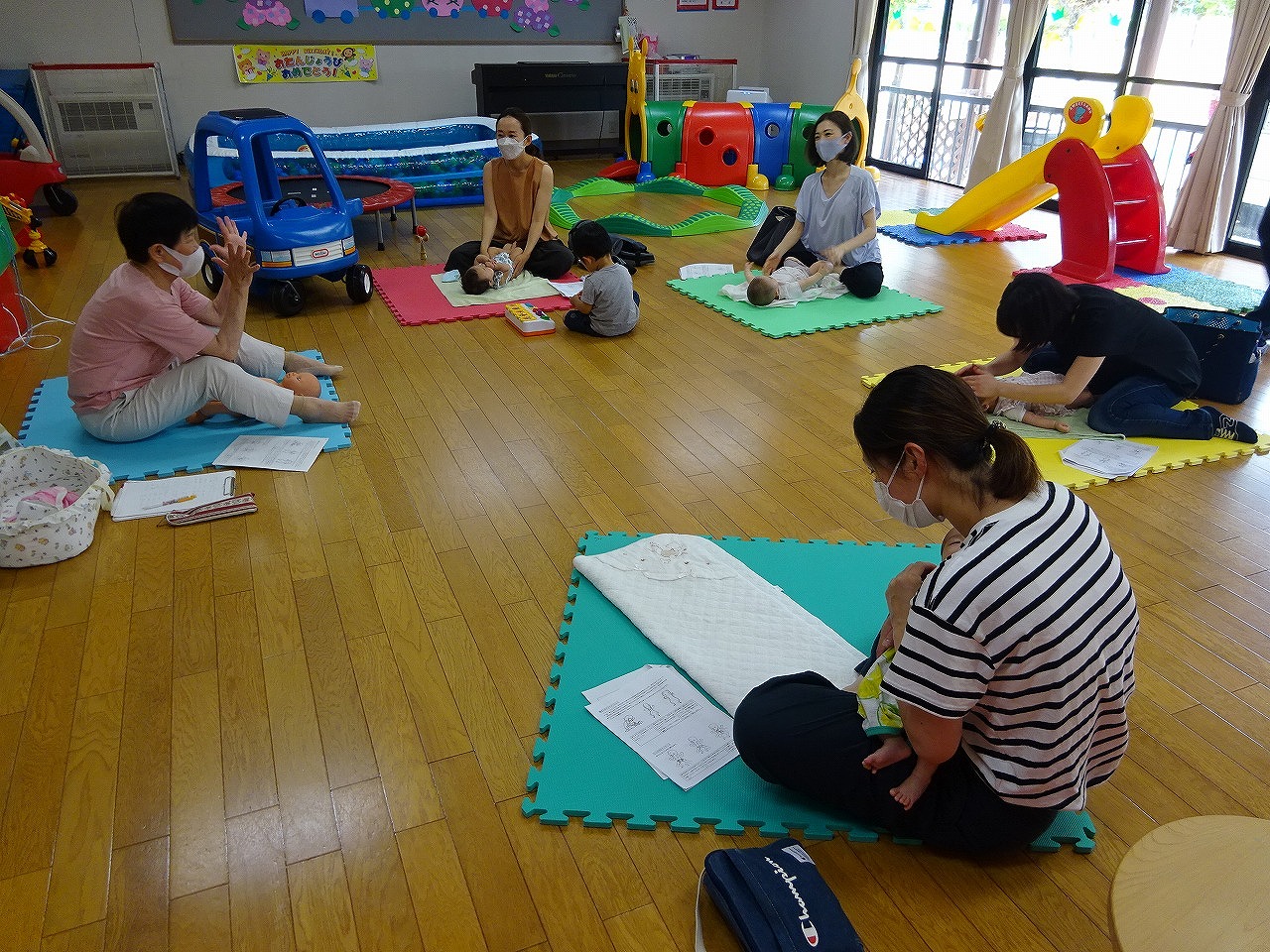 6月27日(月)、北児童館でベビーマッサージ講座をおこない、4組の親子が参加されました。 初対面の皆さんでしたが、自己紹介や講師の小林英子さんとの会話でお母さん同士の話が弾み、和やかな雰囲気の中でベビーマッサージをすることができました。 赤ちゃん、お母さん共にリラックスできたひとときとなったようでした。