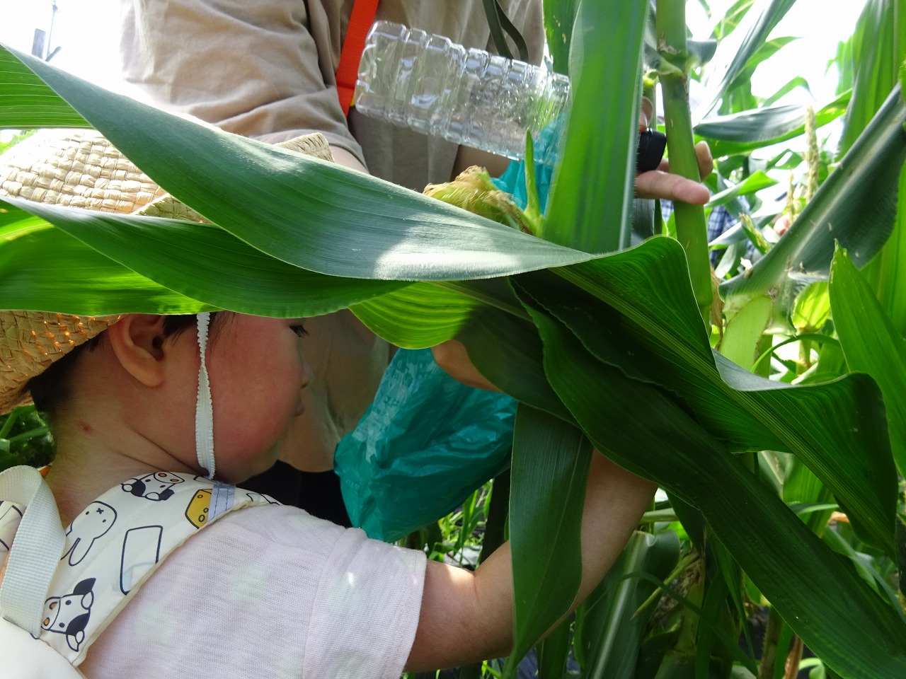 7月26日(火)農園デーでとうもろこしの収穫をおこない、10組の親子が参加されました。