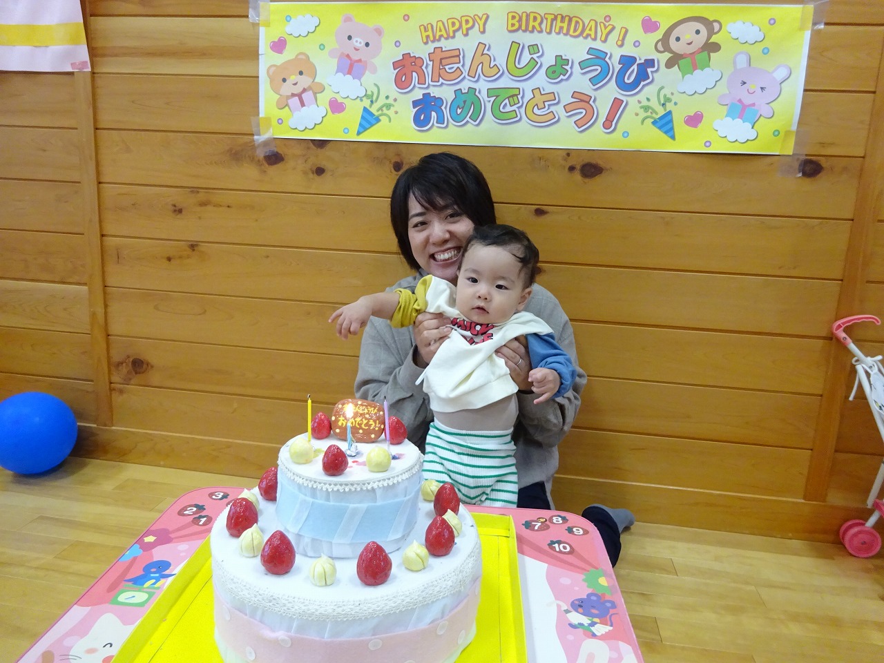 今月も個別で5組の誕生会をおこないました。3組は偶然同じ日に誕生会をされたので、一緒にお祝いができ、年齢もばらばらだったので年齢に応じたそれぞれの反応がとてもかわいかったです。他の利用者さんもたくさんお祝いしてくださり、お母さん方も嬉しそうでした。