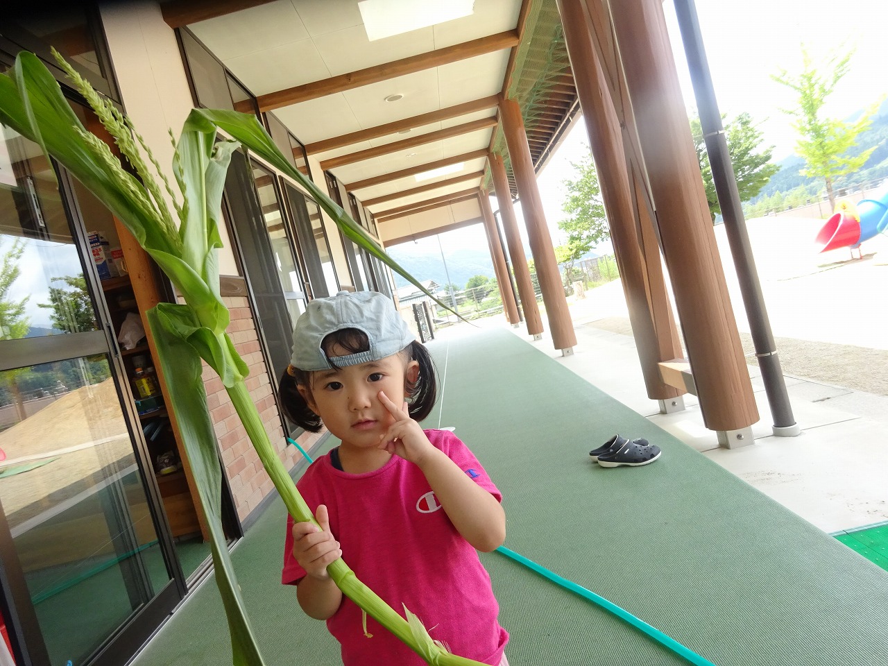 7月11日(火)は、畑の都合で農園デーができませんでしたが、支援センターには畑を楽しみにしていた方々が遊びに来てくださったので、畑で折れてしまっていたとうもろこしを持ったり花を見たり写真を撮ったりして楽しみました。 来週あたり、ヤングコーンが採れるといいなと思います。