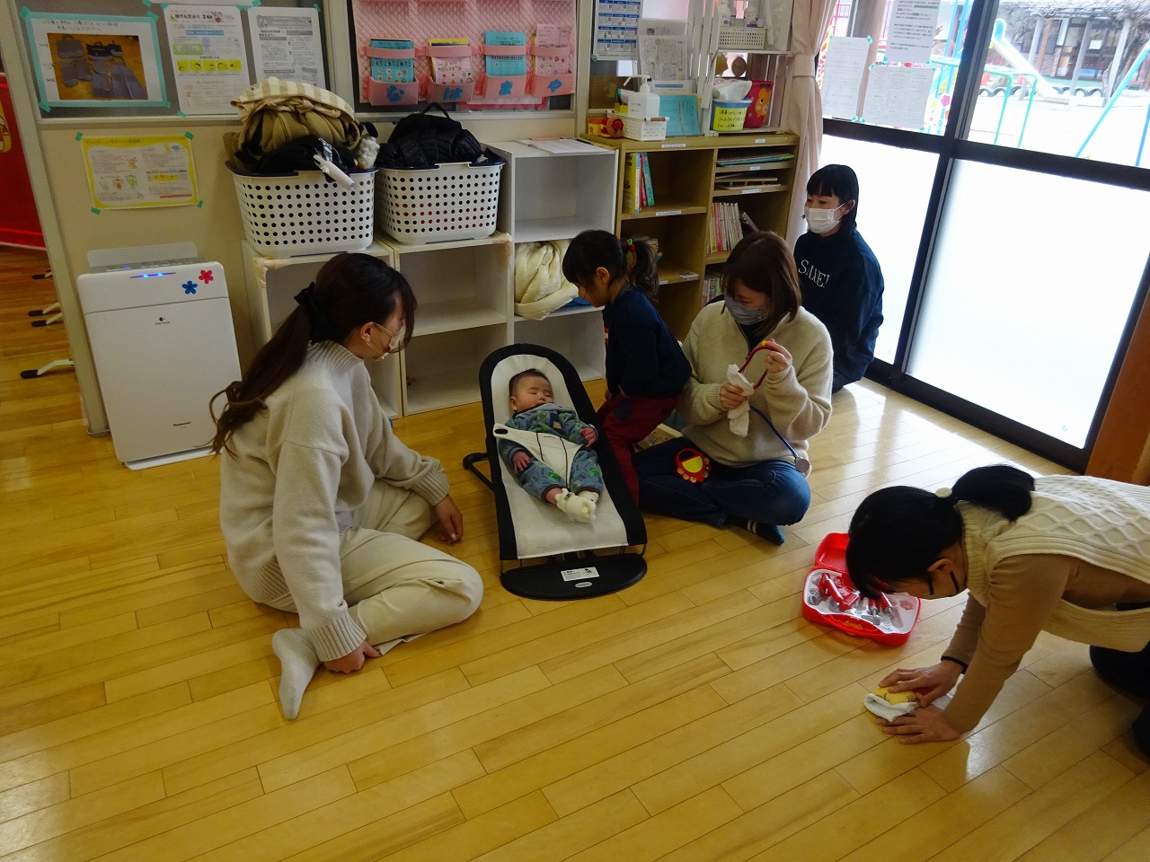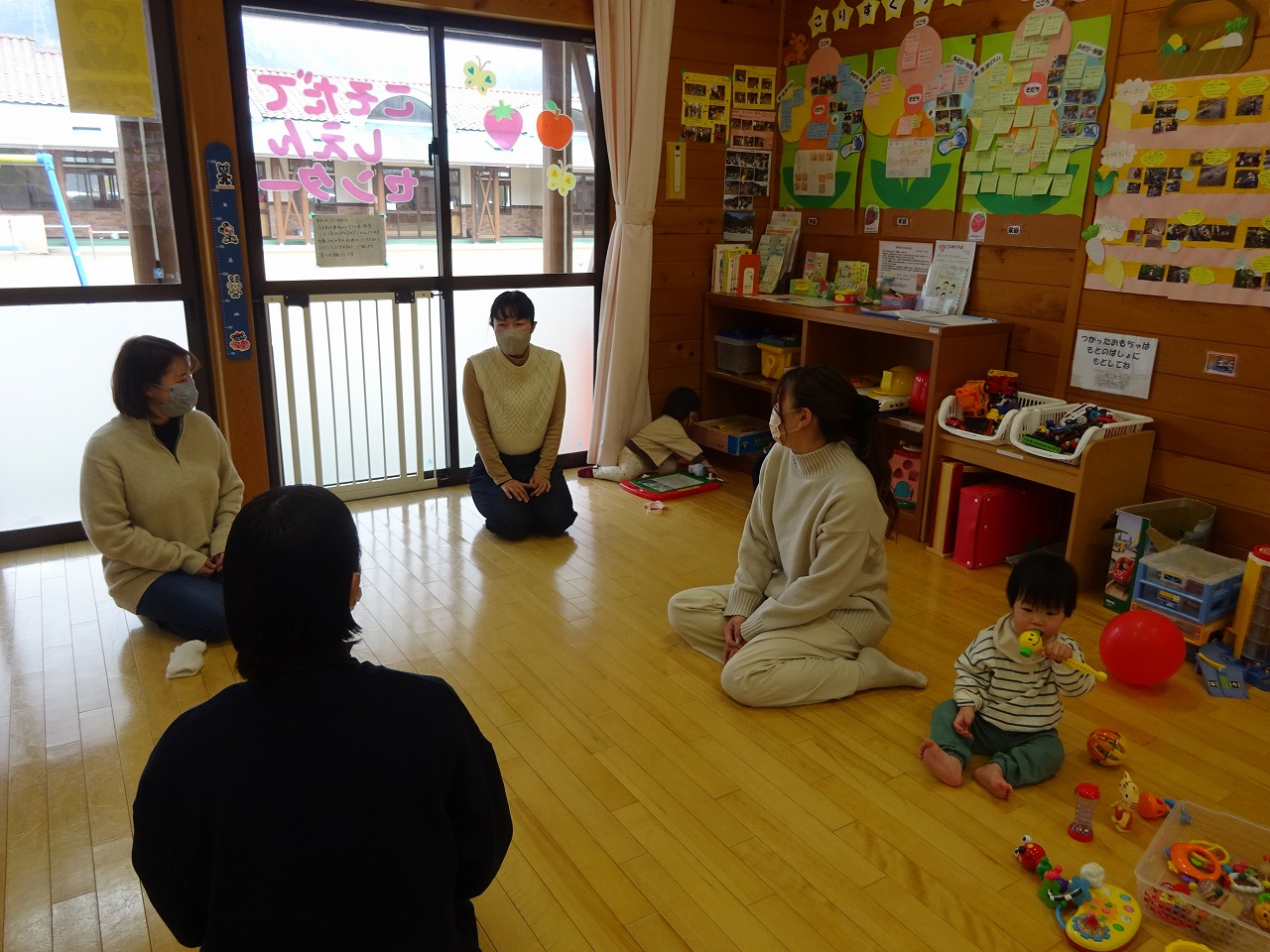 3月4日(月)1歳までの赤ちゃんとママの交流会「ぽっかぽかDay」をおこない、3組の親子が参加しました。 参加者が少なかったので、遊びに来ていた先輩ママさんにも座談会に加わっていただき、離乳食や食事のこと、身近な遊び場、爪を切る方法やタイミングなど日頃気になっていることを気軽におしゃべりすることができました。 お子さんだけでなく、ママにとっても良い出会いの場になっているといいなと思います。