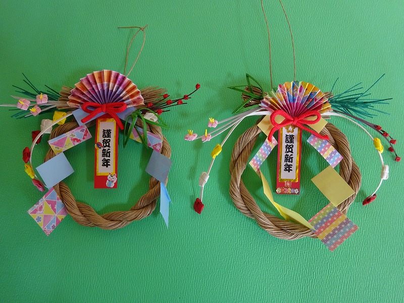毎年苦戦するのは、2人1組で協力してクラフトの束をなうところです。今回も先生と職員があちこち手伝いました。その後の飾りつけはとてもスムーズで、例年よりも早く仕上がりました。みなさん満足気な笑顔で帰られました。