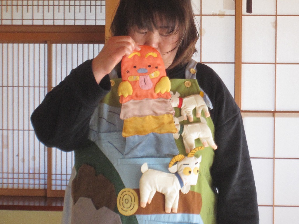 そして久しぶりにエプロンシアターが登場!! 〝やぎのがらがらどん″先生の上手な語りに5組の親子はし〜んと静まりかえって集中していました。 来年で今年度最後となります。 たくさんの参加をお待ちしています。