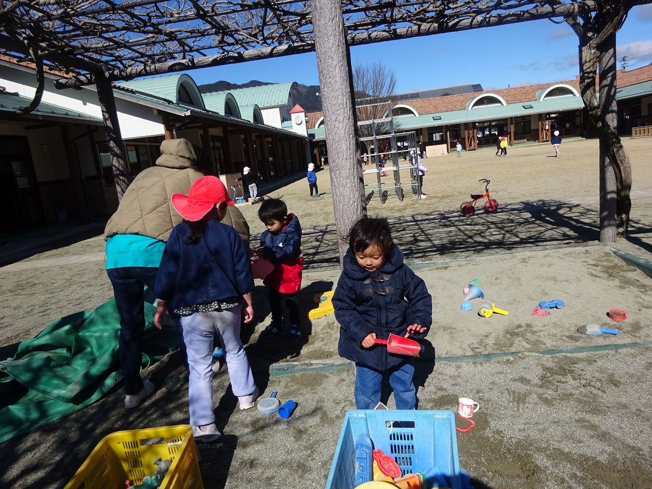 2月16日(金)園庭開放をおこないました。風が強い寒い日でしたが、親子で元気に体を動かしてあそびました。来年度年少さんになるお子さんたちは、友だちと一緒に遊んだり大きい子の真似をしたりして園での遊びを楽しみにしているようでした。