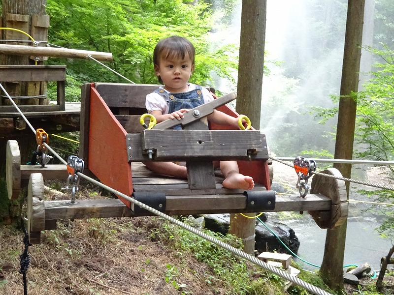 わかあゆ子育て支援センターとのコラボ企画、「森のニンジャで遊ぼう&まきまきパン」を行いました。15組33名の参加がありました。馬瀬にある森のニンジャでマイナスイオンを浴びながら、アスレチックや川遊び、木の棒にパン生地を巻きつけて炭火で焼いたまきまきパンと焼きおにぎりの味は格別でした。 |