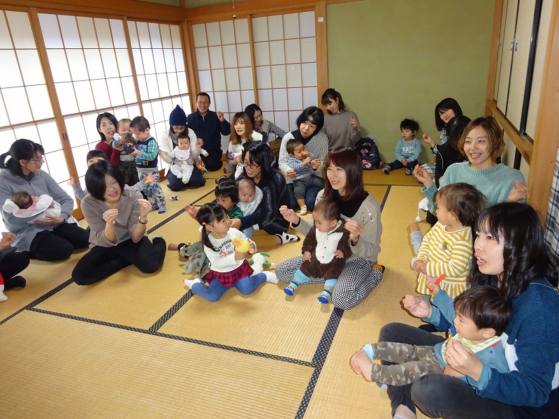 雪がちらつく寒い日でしたが、10組の参加がありました。今回はお兄ちゃんお姉ちゃんが5人いて賑やかでした。2ヶ月〜6ヶ月の赤ちゃんたちは、気持ちが良くて眠ってしまう子やずっと泣いている子等様々でしたが、いつも変わらないのはお母さんたちの我が子を見る温かい目とマッサージする手の優しさでした。こちらまで幸せ感が伝わってきました。 |
