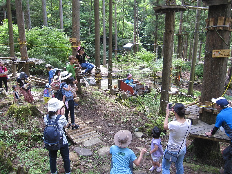 森のニンジャでアスレチックをしたり、魚釣り、川遊びをして、親子で楽しむことが出来、大自然を満喫してみえました。また、まきまきパン・焼きおにぎりを炭火で焼いて食べました。沢山食べる子どもの様子から美味しいことが良く伝わってきました。親子で自然に触れ、サバイバルキッズになって楽しい時間を過ごすことが出来たように思います。 |