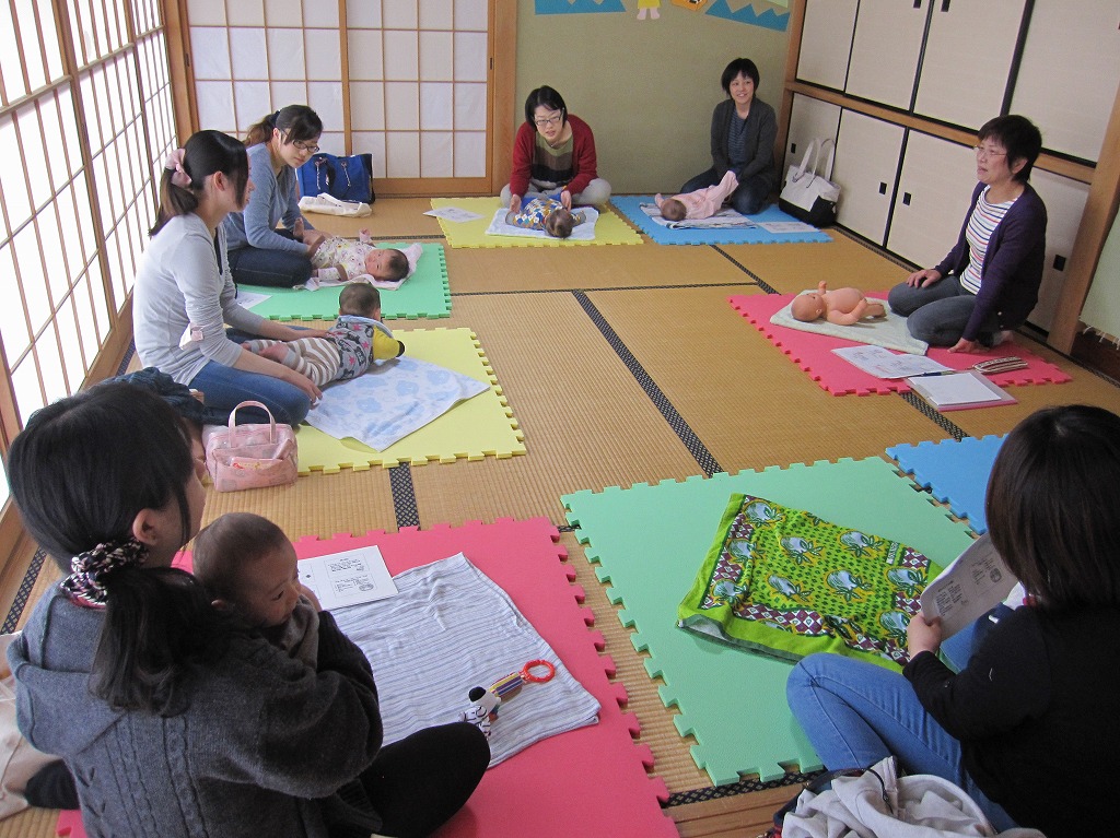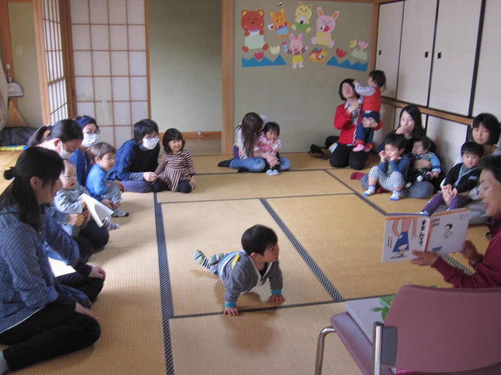 近くの原っぱへ行き、あねかえしを作る為のもち草摘みを行った。広い原っぱで、親子で楽しそうにおしゃべりをしながら、摘んでみえる姿はとても微笑ましかったです。今の季節しか出来ない、郷土のお菓子を作ることを企画することで、若い世代のお母さん達に伝えていけるといいなと思います。 |
