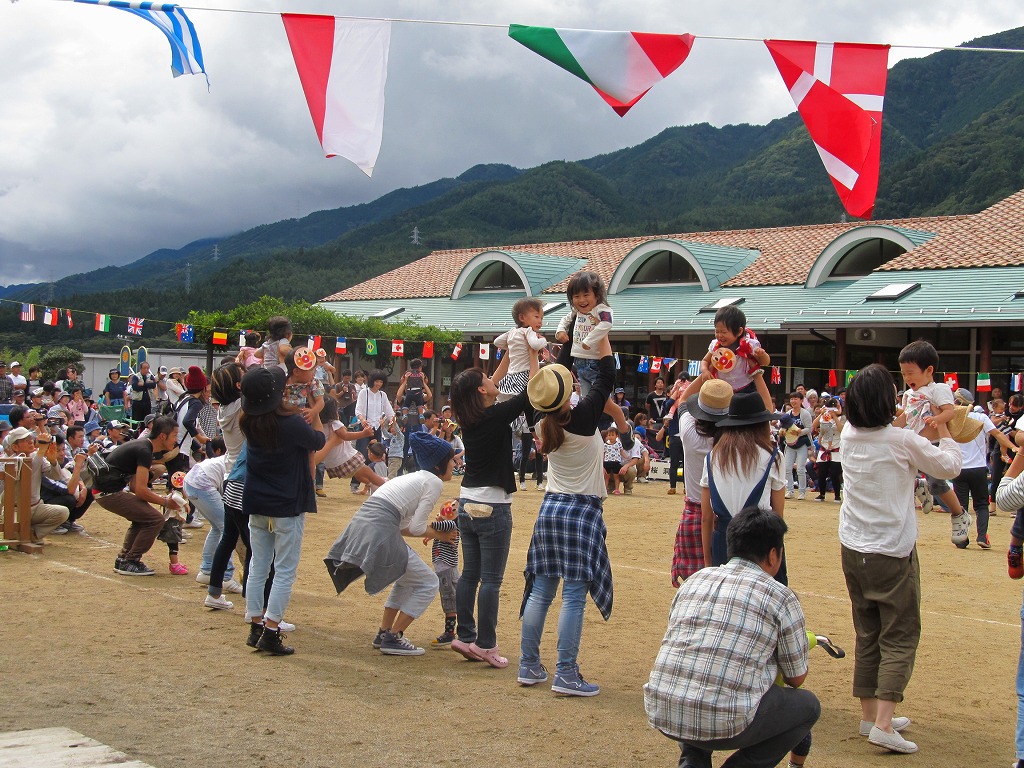 あつまれちびっこで、萩原南保育園の運動会に参加して、アンパンマン体操を踊りました。 |