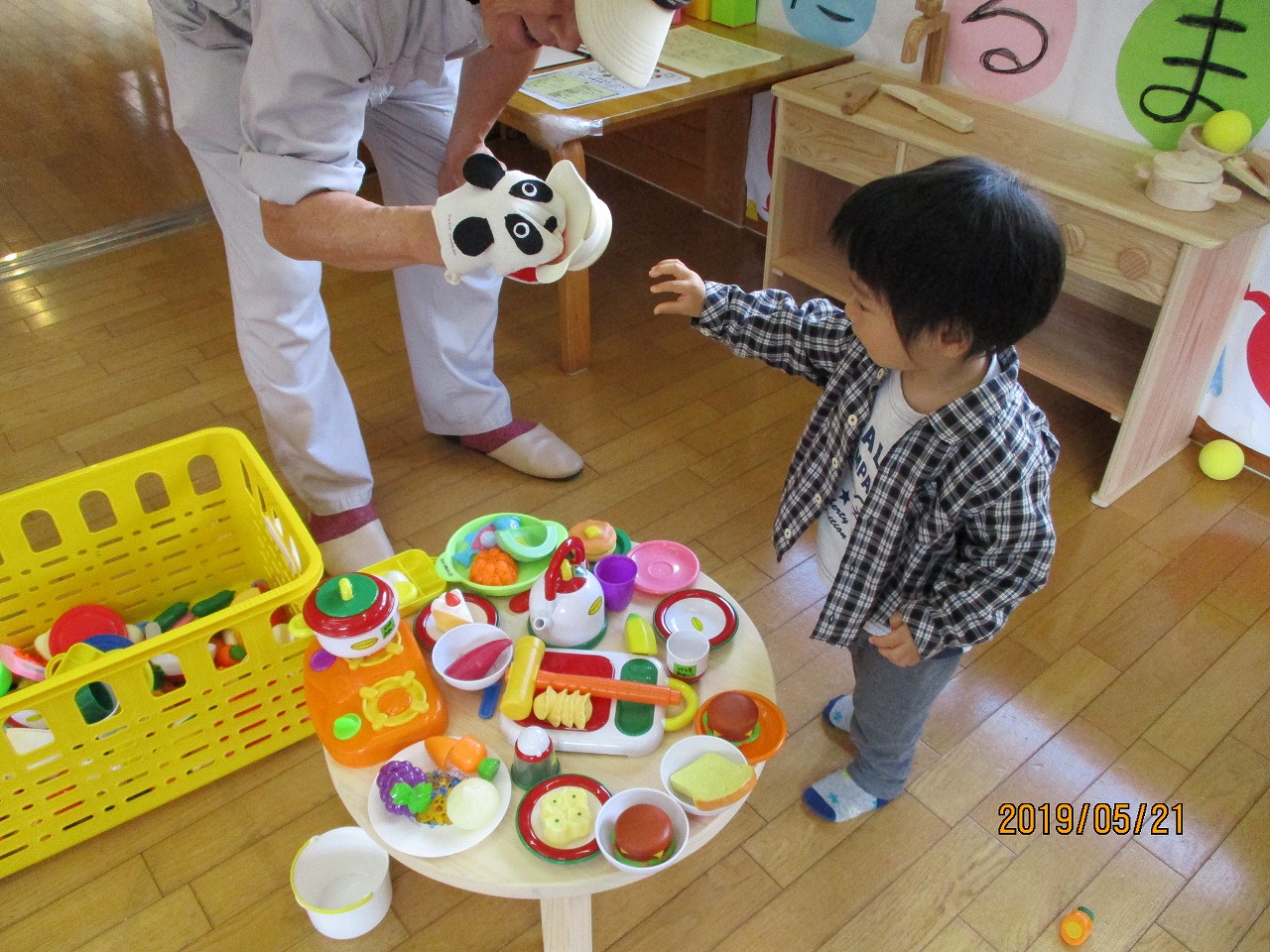 乳幼児学級で使用するBirthdayカードのパーツづくりをしました。参加された方のお子さんが8月生まれということでひまわりの花のパーツを作られていました。 お子さんはままごとが好きで、ままごとセットでごちそうを作りお母さんのところに運んだりと作業しながらもお互いに楽しそうに過ごされていました。
