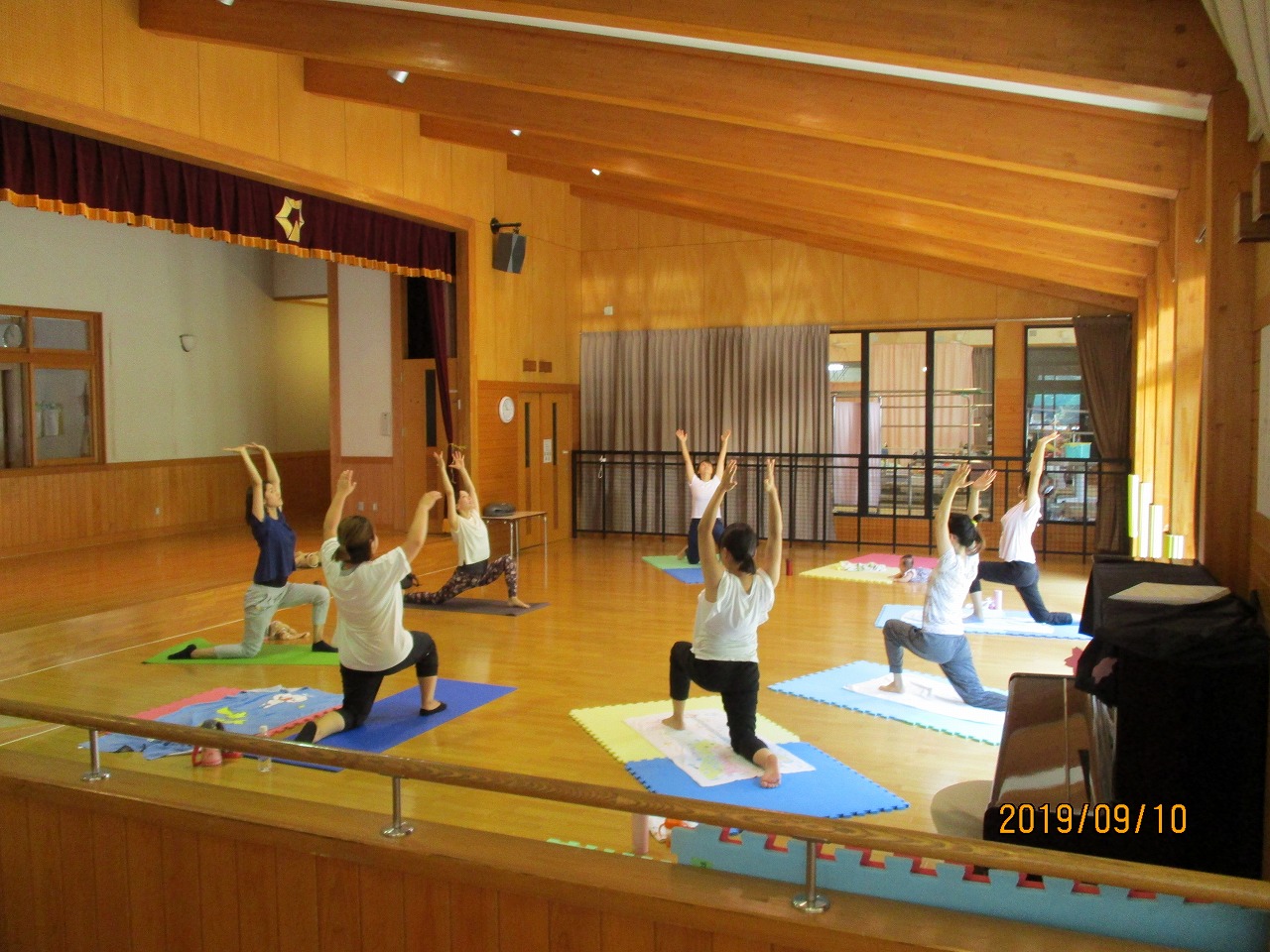 内木ゆう子さんを講師にお迎えし、昨年度好評だったヨガを「育児の疲れをヨガでリラックス」「親子で出来る簡単なヨガ」をテーマに教えて頂きました。 はじめに一人一人の体調を聞いてもらい、子どもたちと一緒にできるヨガを教えて頂きました。 その後お母さんたちだけで本格的なヨガを教えて頂き、日頃育児と家事でなかなか自分の時間が作れないお母さんたちも、子供から離れてヨガに集中できたのでとてもリラックスできるよい機会となったようでした。