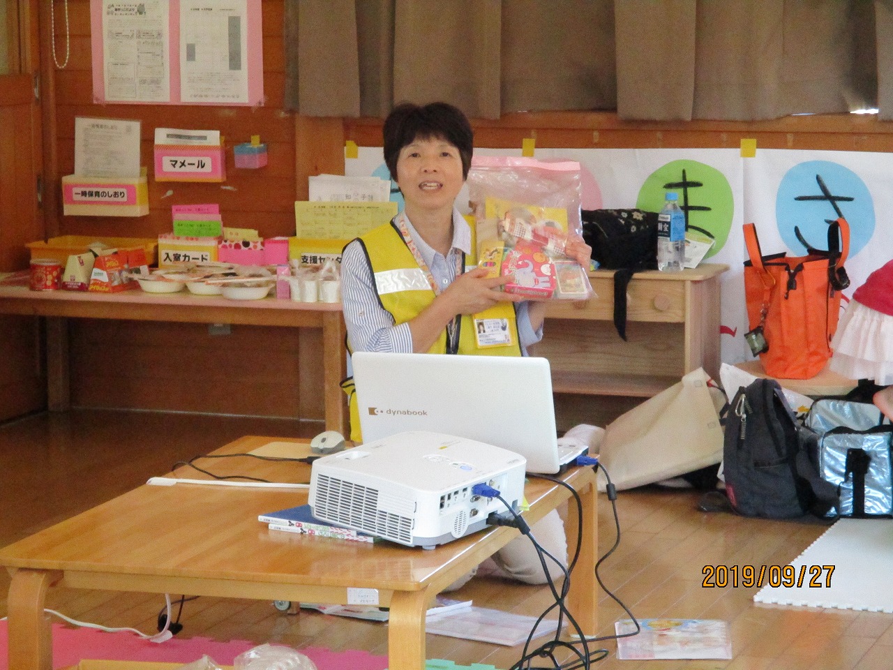 自然災害について学び、避難袋や非常食などを教わりました。