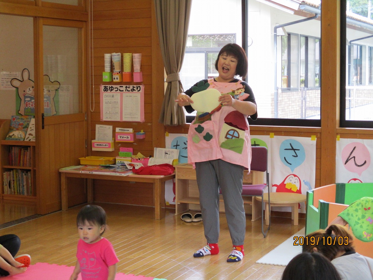 手遊び・絵本の読み聞かせ・エプロンシアターをしました。