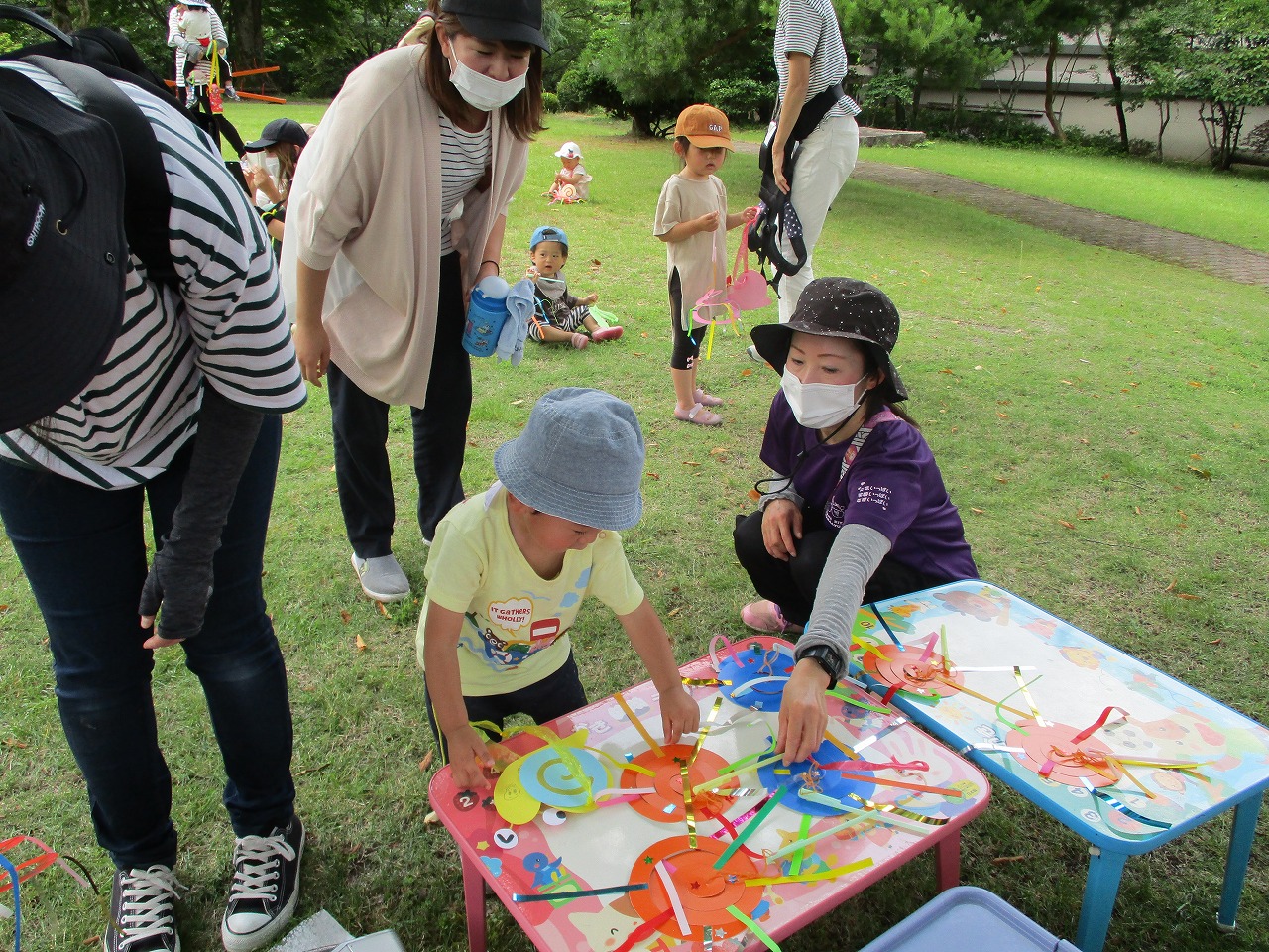 20組の参加がありました。初めにおかあさんといっしょの体操「からだ☆ダンダン」をみんなで踊りました。良く知っている体操なのでお母さんも子どもたちも喜んで踊ってくれました。そして、初めましての親子の方々もみえるので人数集めゲームをして自己紹介をしてお知り合いになってもらいグループごとにのんびりウォークラリーに出発してもらいました。