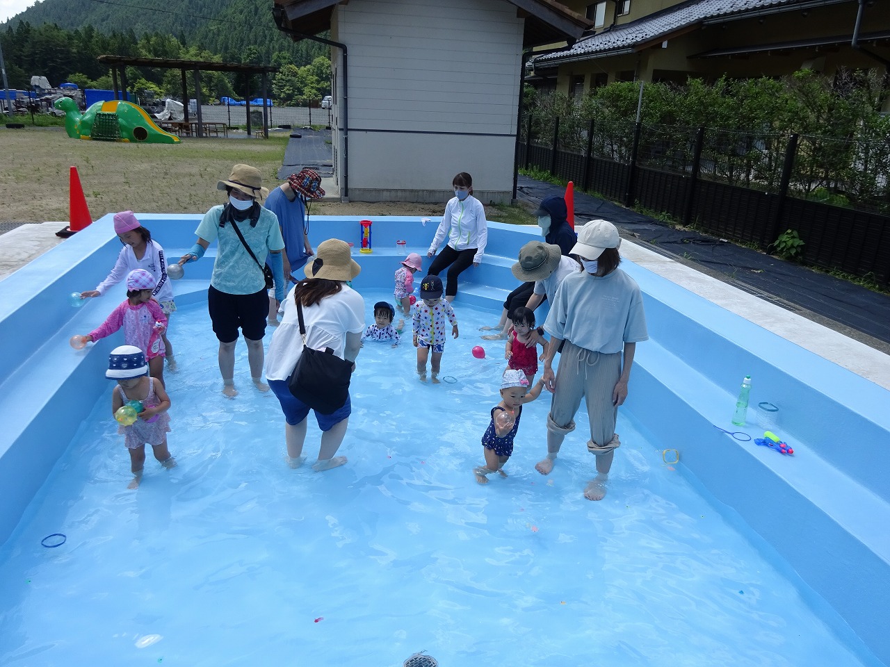 萩原子育て支援センターとコラボ「プールであそぼう」の2回目を行いました。