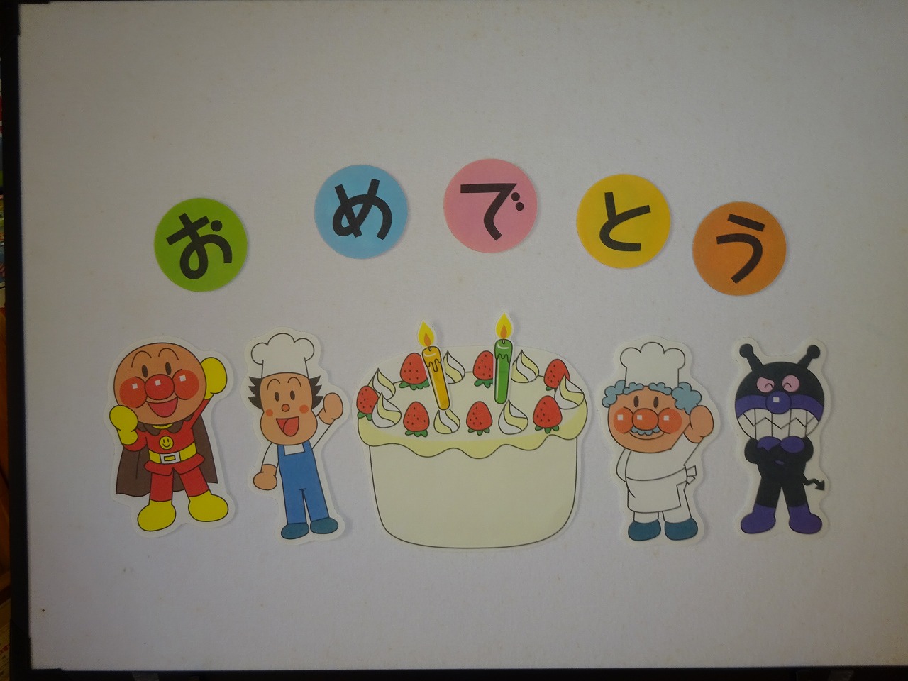 とても上手にケーキのロウソクを吹き消してくれました。 おたのしみは「アンパンマンのおたんじょう会」のパネルシアターを行いカードのプレゼントをしました。 5月生まれのお友だちのたんじょうかいは5月31日(木)10:00〜です。 みんなでお祝いをしましょう。連絡お待ちしています。