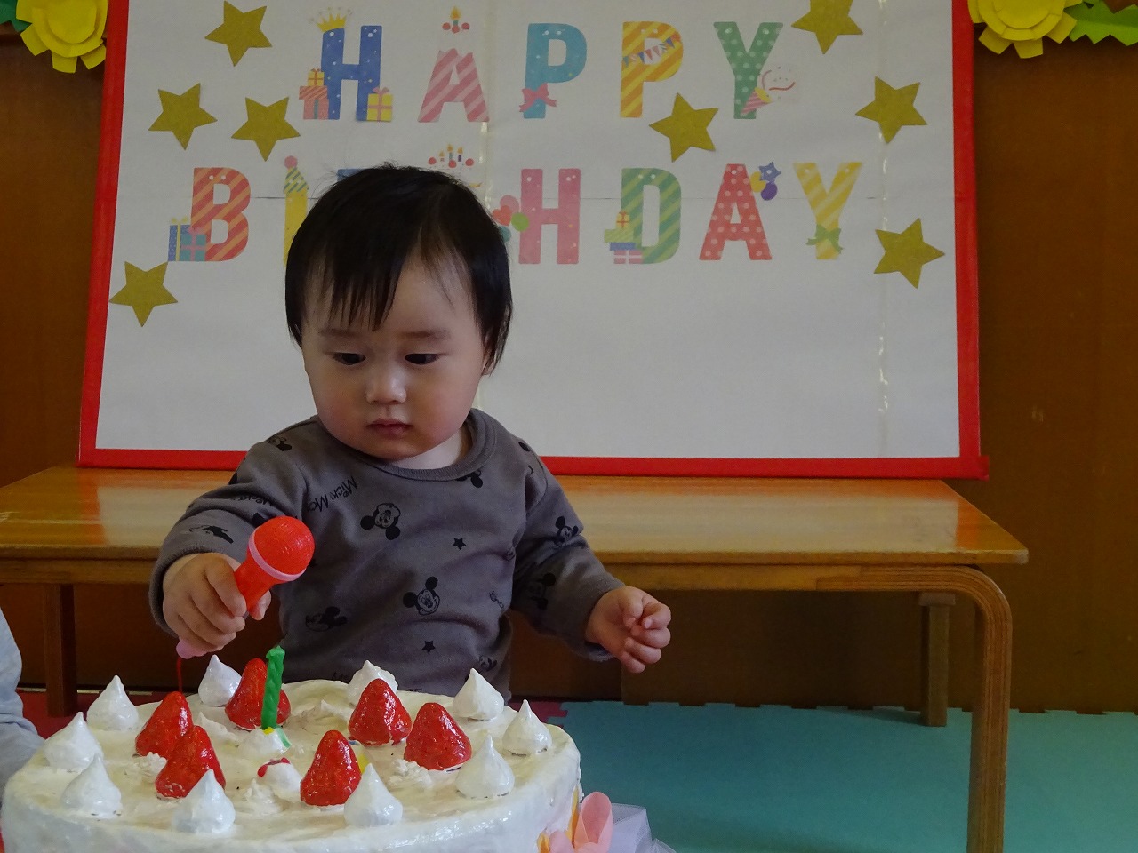 2月3月生まれのお友だちのたんじょうかいを行いました。