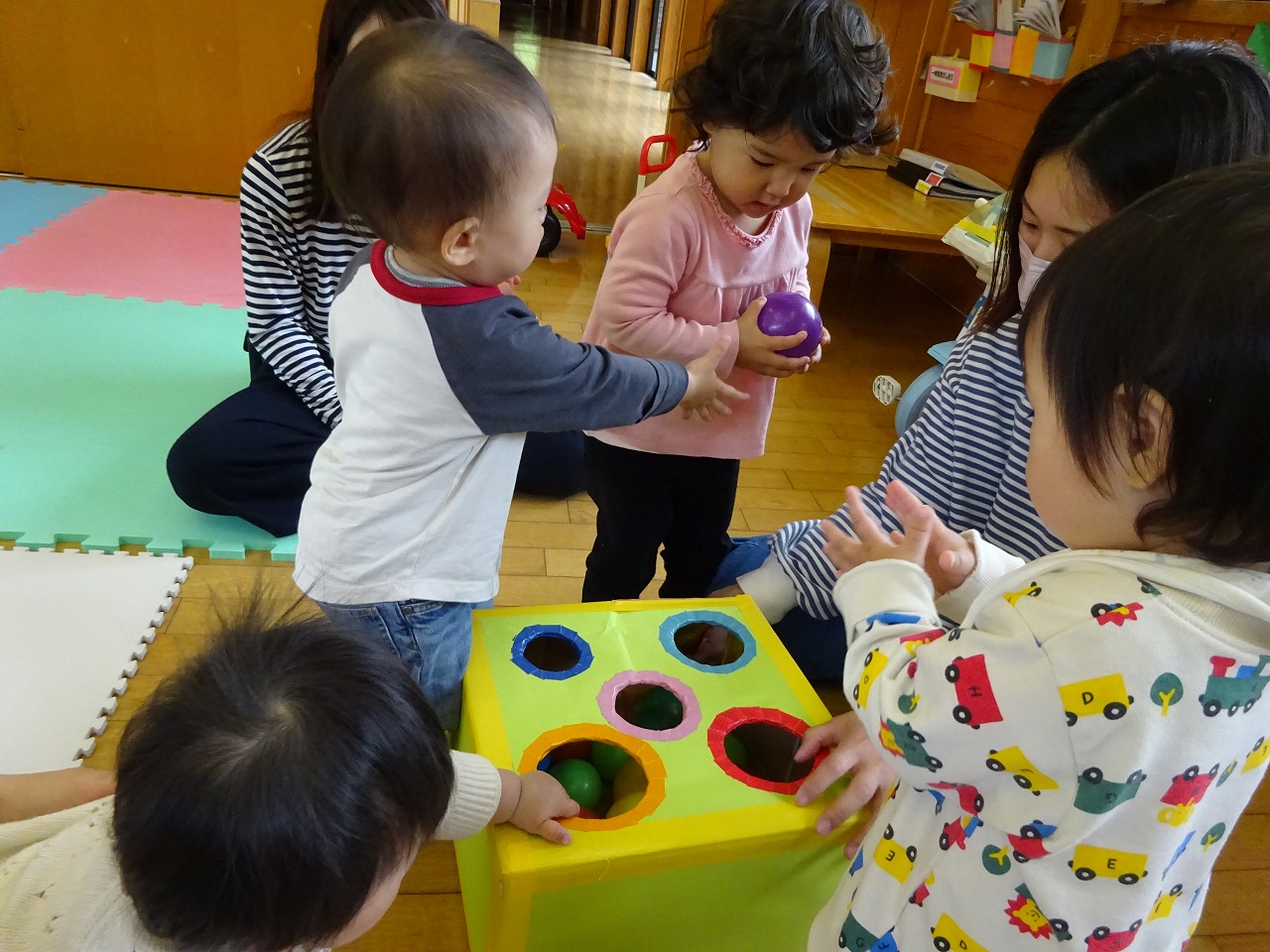 12日、15日の2日間キラキラペットボトル製作を行いました。7組の親子が参加してくれました。 子どもたちの真剣にビーズを入れる表情に成長を感じました。食紅で色を付けたところキラキラが見えにくくなってしまったのがちょっと失敗でした。 天気が良く大きい子どもたちは園庭で水遊び小さい子どもたちは支援センターでゆったりと遊んでもらいました。