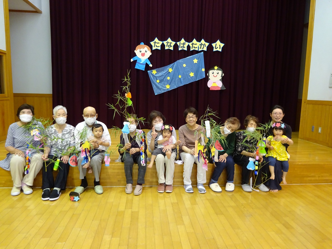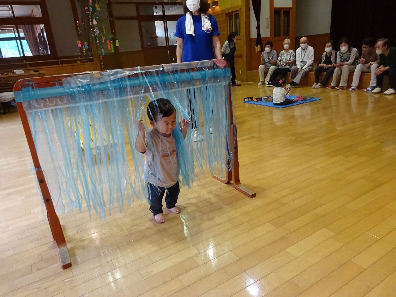 ほのぼの館の方と一緒に七夕会をしました。七夕の歌を歌った後、子どもたちがおばあちゃんたち一人ずつから星を冠に貼ってもらってステキな冠を作りました★最後は天の川を渡ってラムネをもらって食べました。みんなの短冊の願い事が空に届くといいですね☆彡